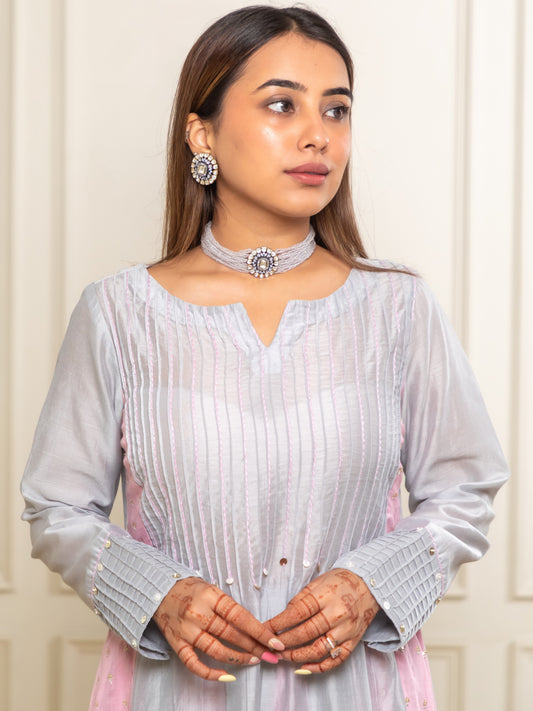 ISHTARA GREY PIN TUCKS DRESS WITH KALI PALAZO AND DUPATTA #ISH07