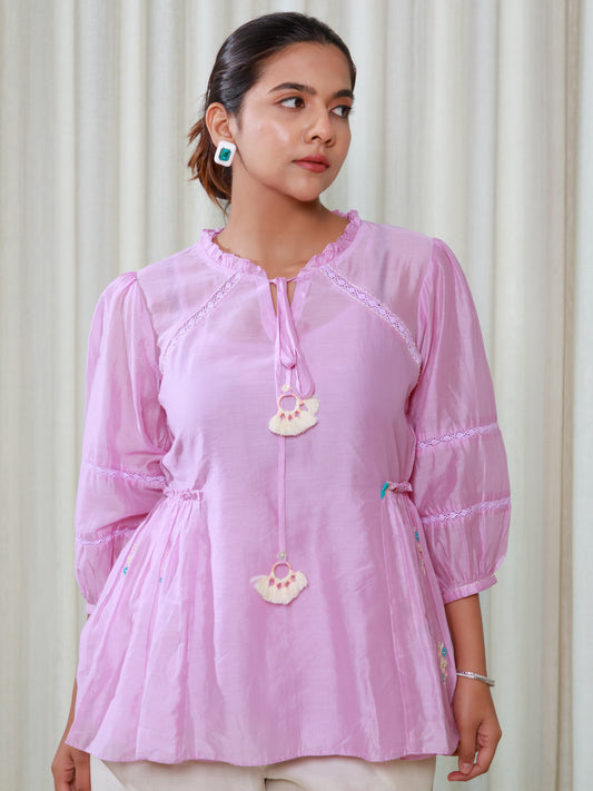 ISHTARA LAVENDER SHORT TOP WITH OFF-WHITE FLARED PANTS #ISH30