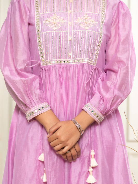 ISHTARA LAVENDER YOKE DRESS WITH ANKLE LENGTH PANT #ISH19