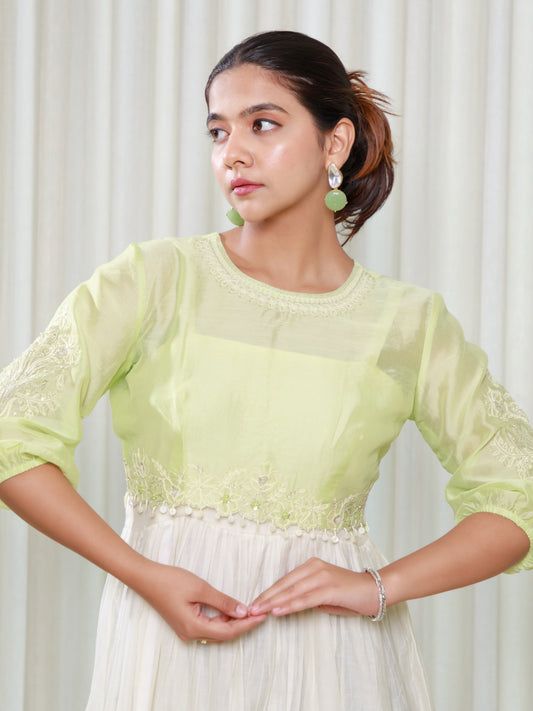 ISHTARA OFF-WHITE GOWN WITH PASTEL GREEN BLOUSE TOP #ISH14
