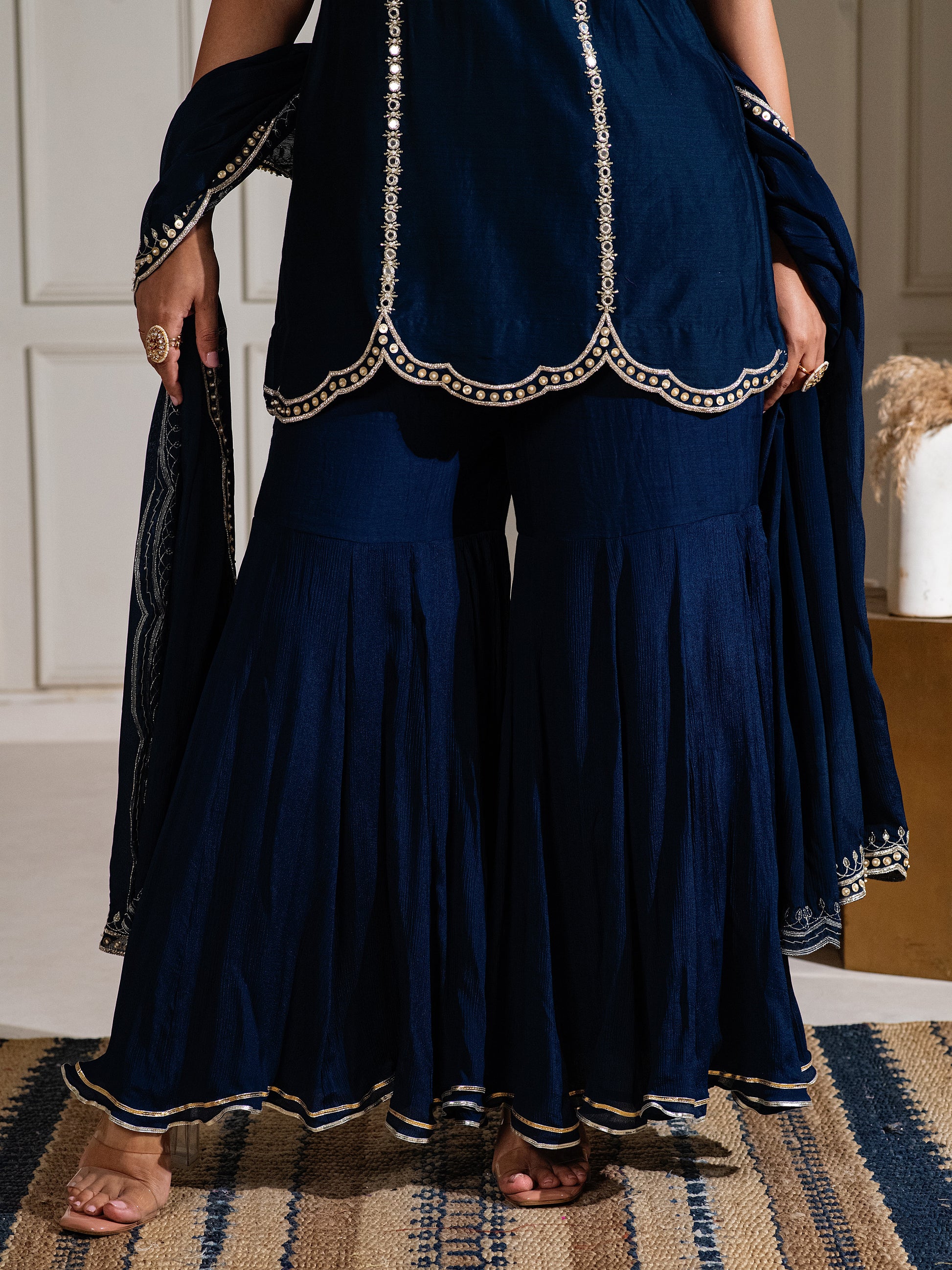 ISHTARA'S MIDNIGHT BLUE SHORT KURTA WITH A FLOWY GHARARA WITH A DUPATTA #NAV06