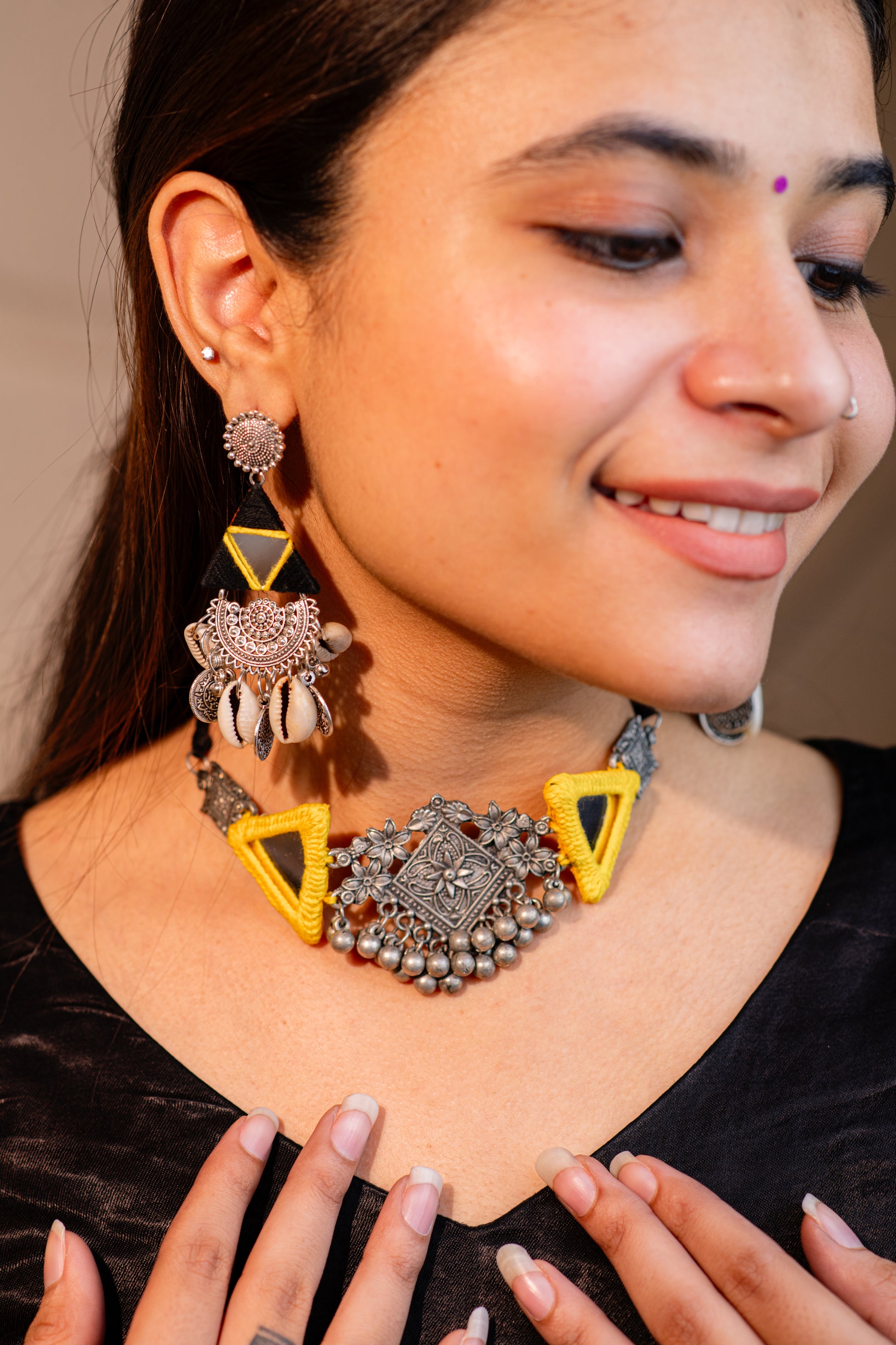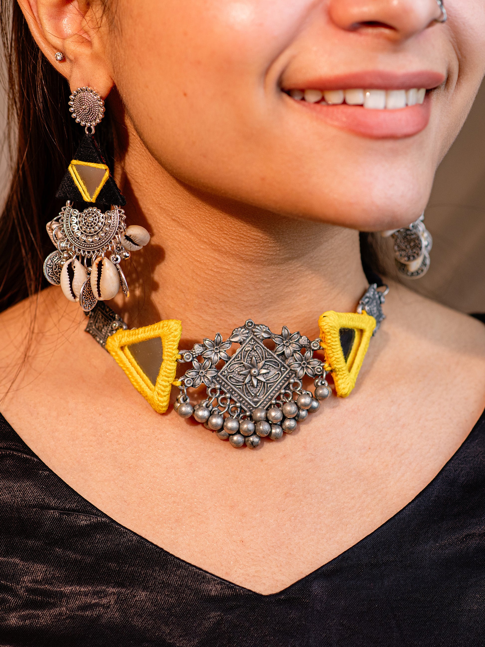 Elevate your ensemble with this elegant jewelry set featuring a chic choker and coordinating earrings. Designed for a cohesive and refined look, this set seamlessly blends style and sophistication, perfect for enhancing both casual and formal attire. Crafted to complement a variety of outfits, it offers versatility and timeless appeal.